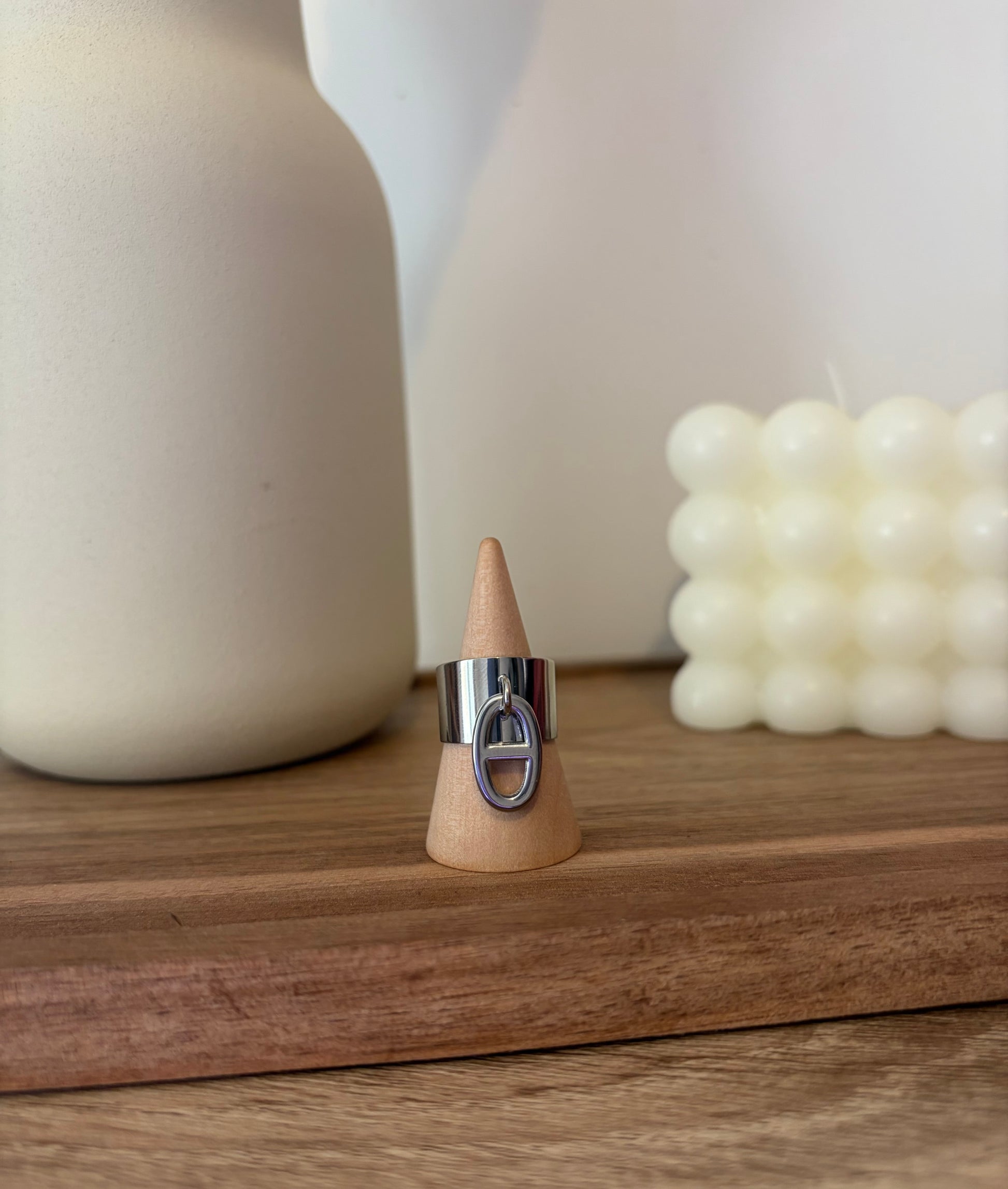 bague ajustable avec breloque en acier inoxydable 100% résistant à l’eau